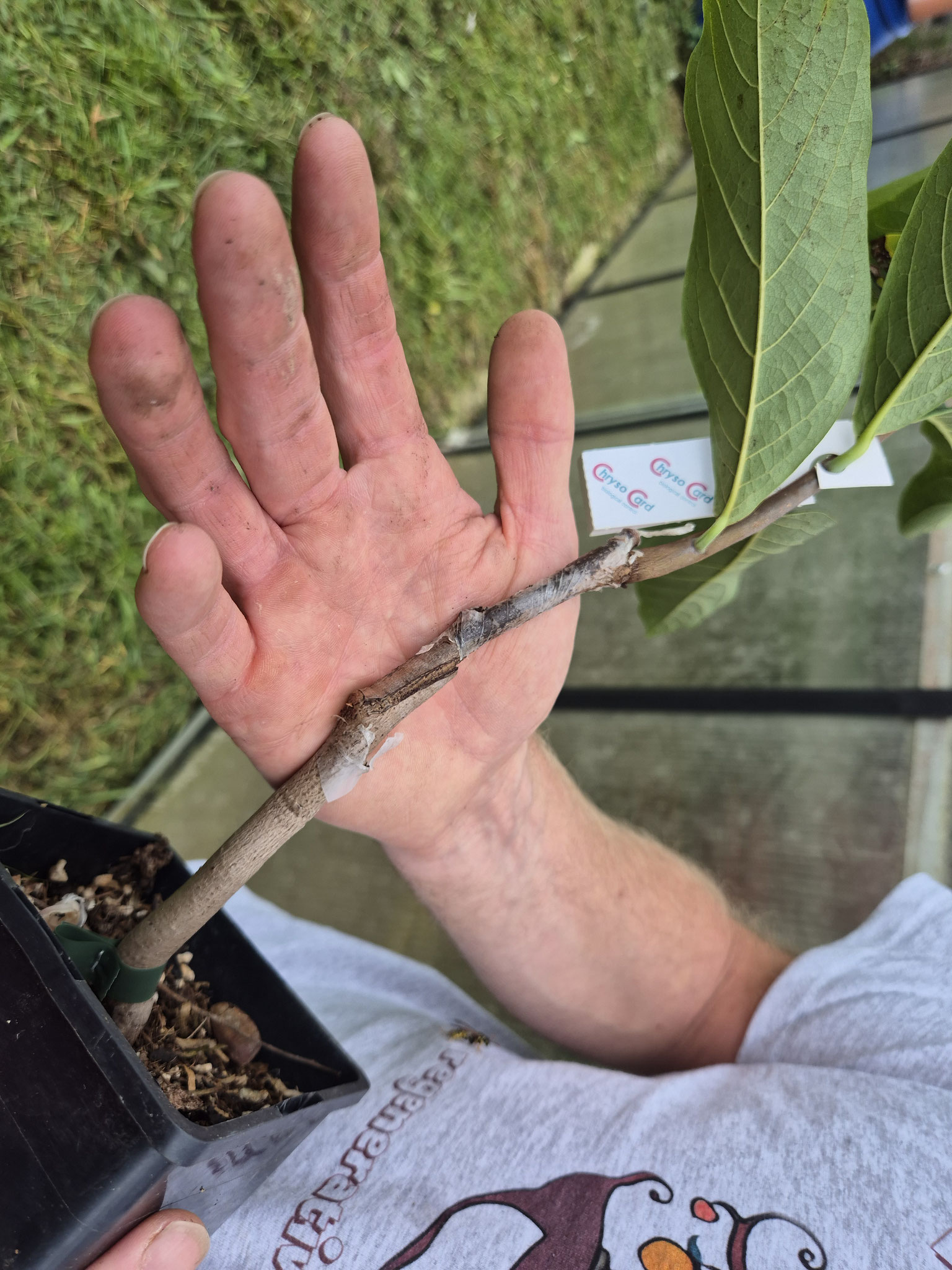 Prolific X Overleese - Die Sorte ist sehr früh, produziert durchschnittlich bis große Paupaus, hellgelbe Haut und hat ein süßes, ausgezeichnetes Paupau-Aroma. Gezüchtet von Jerry Lehman.