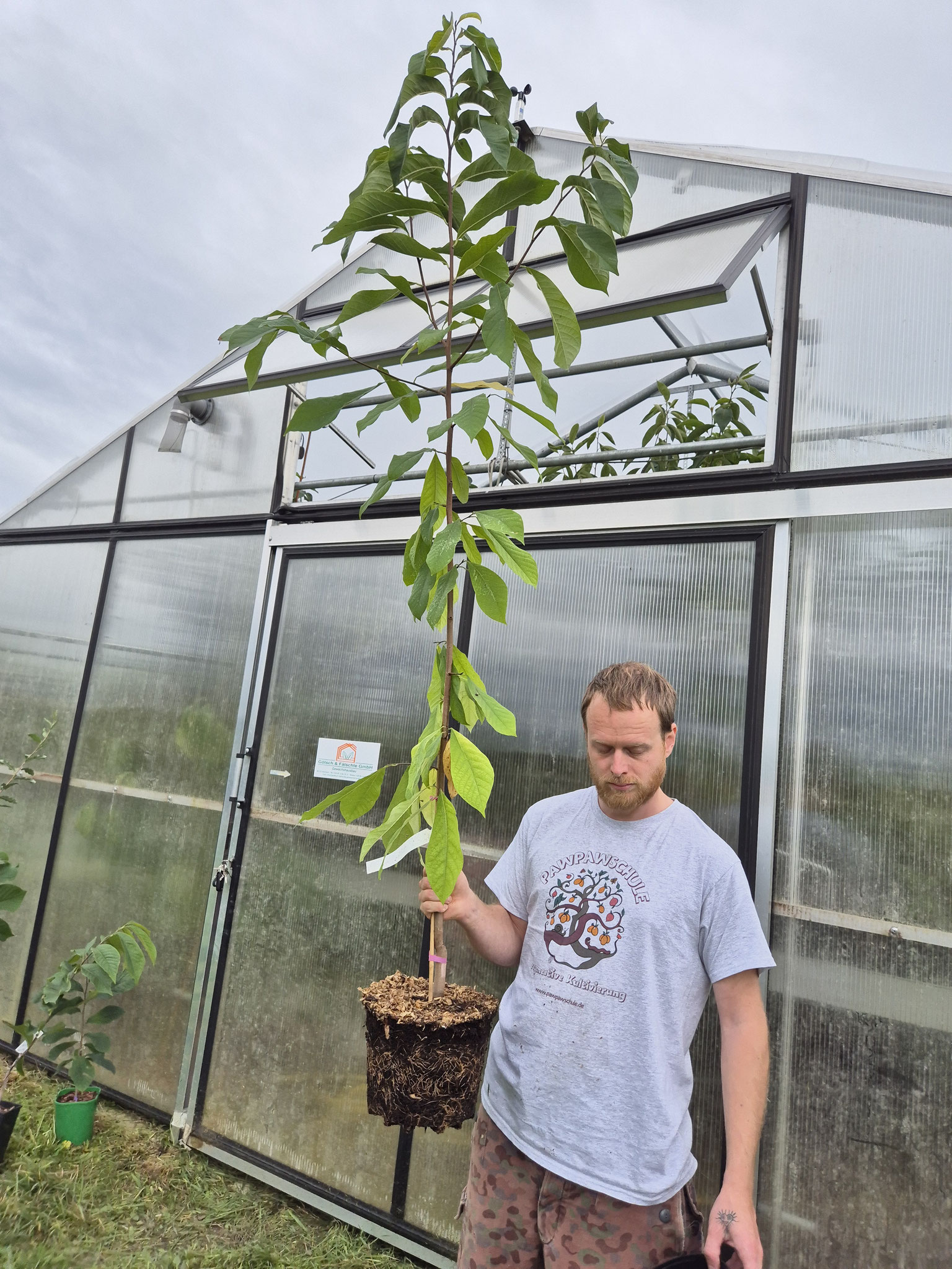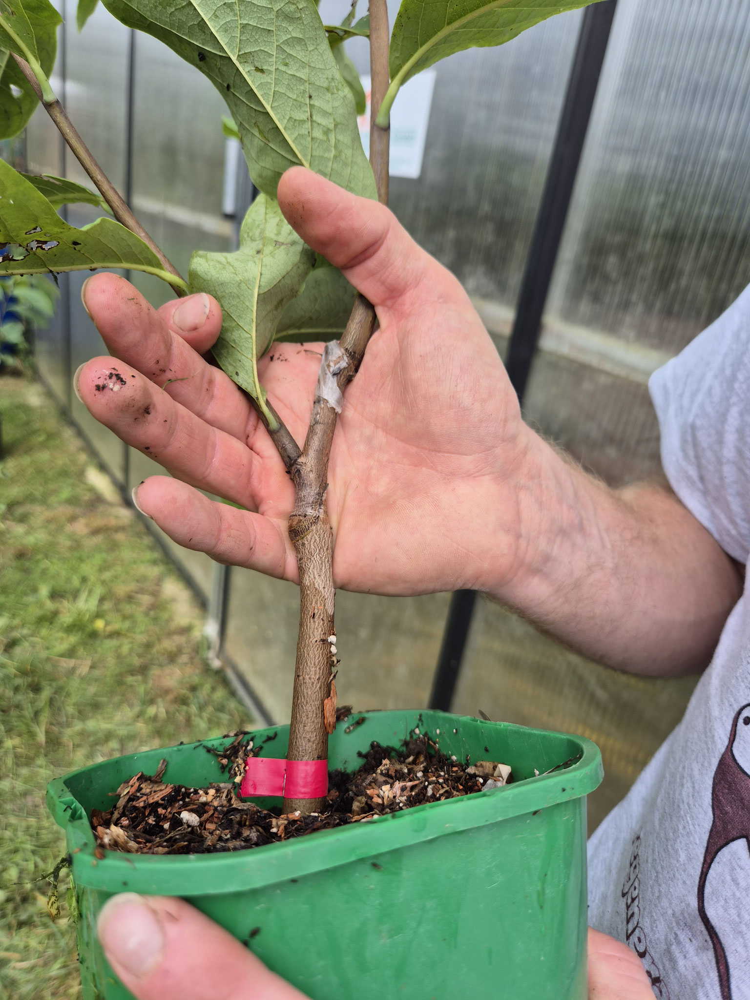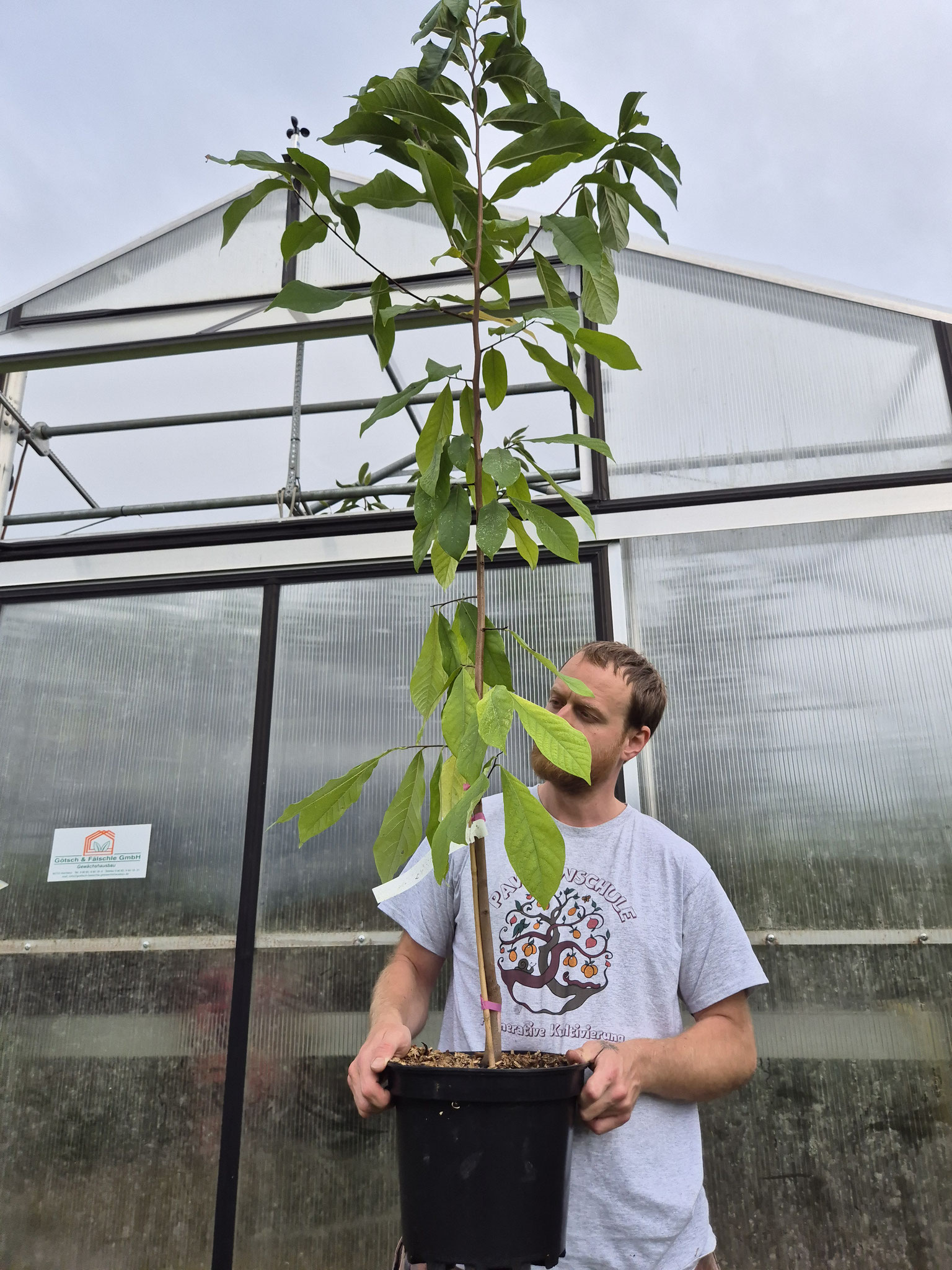 Ich veredele auf Unterlagen in verschiedenen Größen, daher kann es mal vorkommen dass eine 1 jährige Veredelung größer ist, als eine 2 jährige. Desto größer der Baum, desto schnell trägt er.