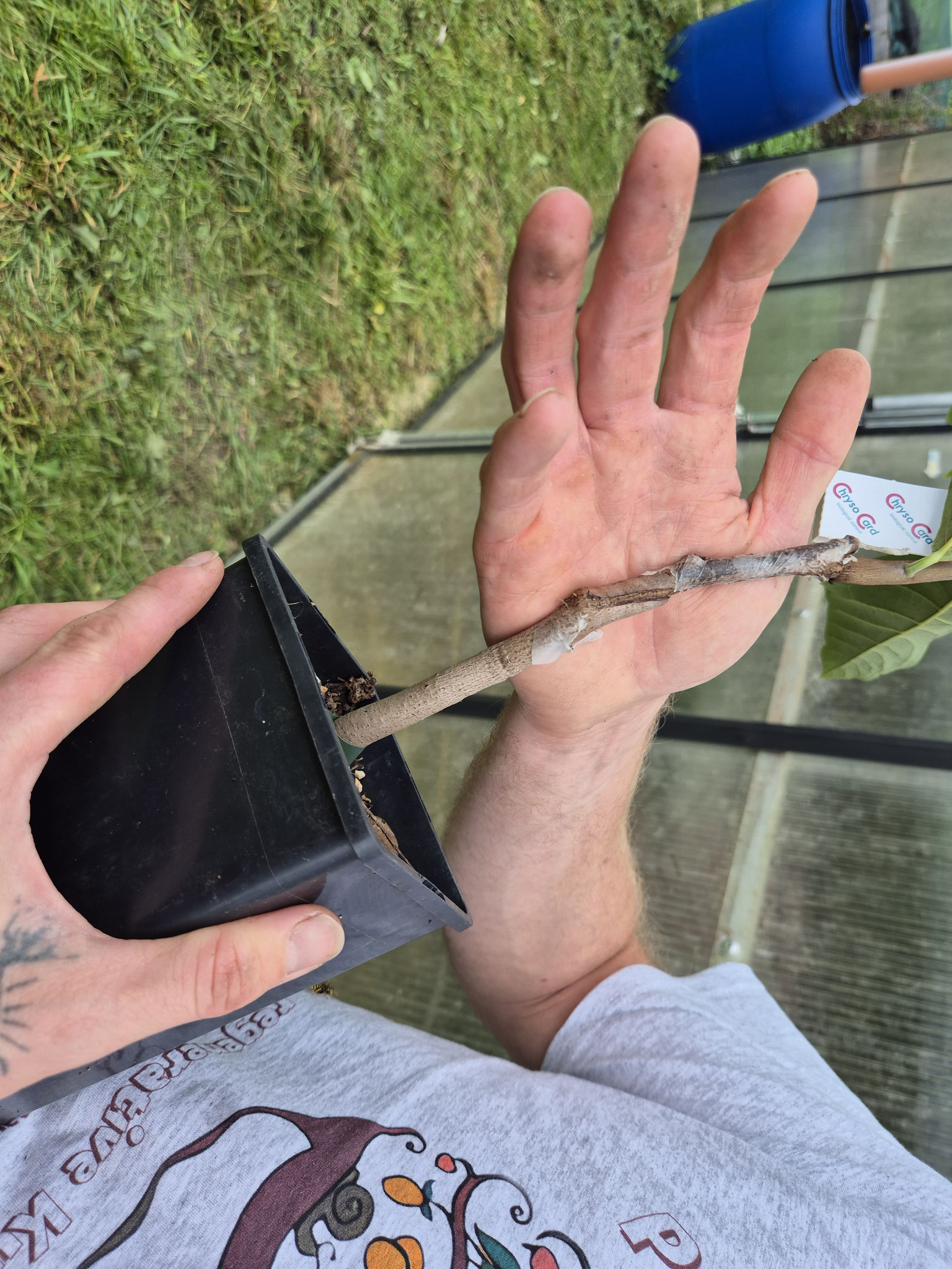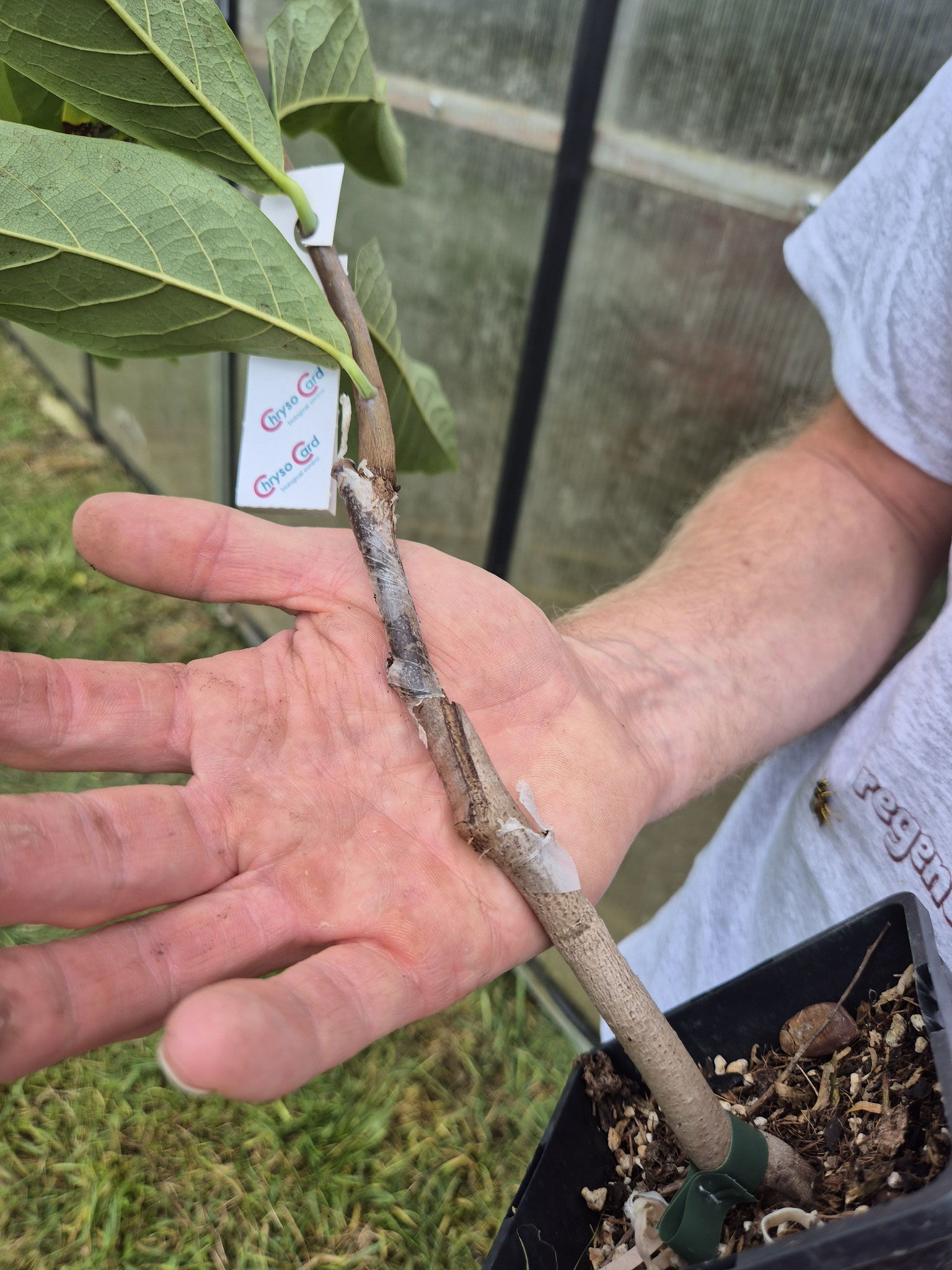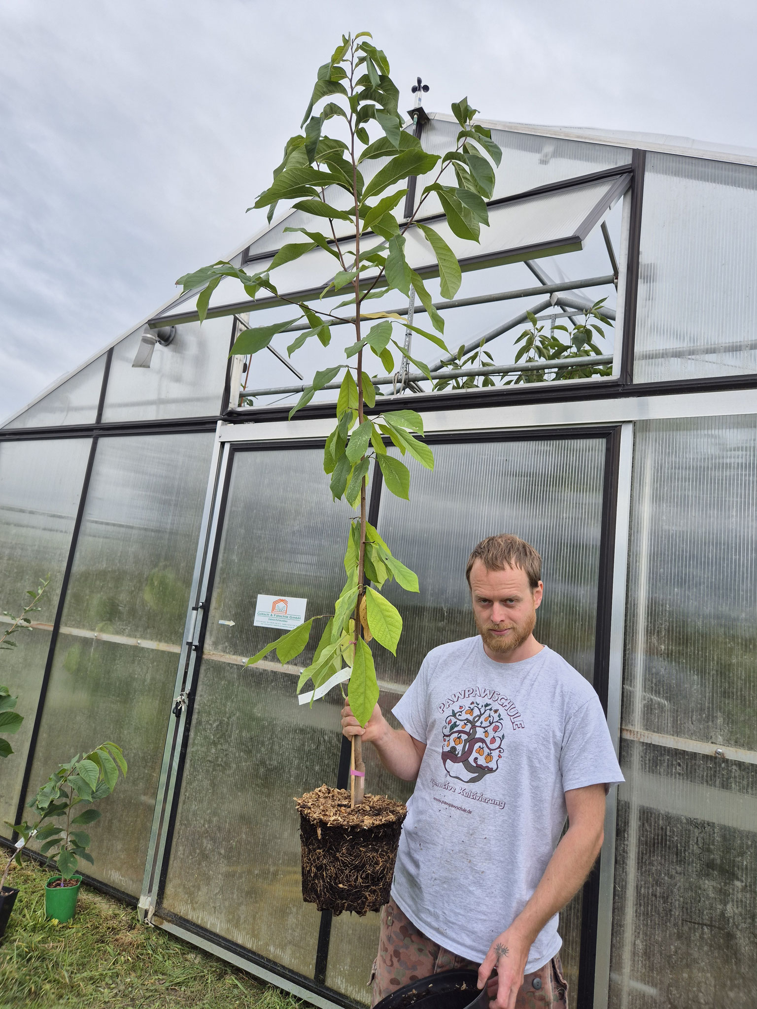 Ich veredele auf Unterlagen in verschiedenen Größen, daher kann es mal vorkommen dass eine 1 jährige Veredelung größer ist, als eine 2 jährige. Desto größer der Baum, desto schnell trägt er.