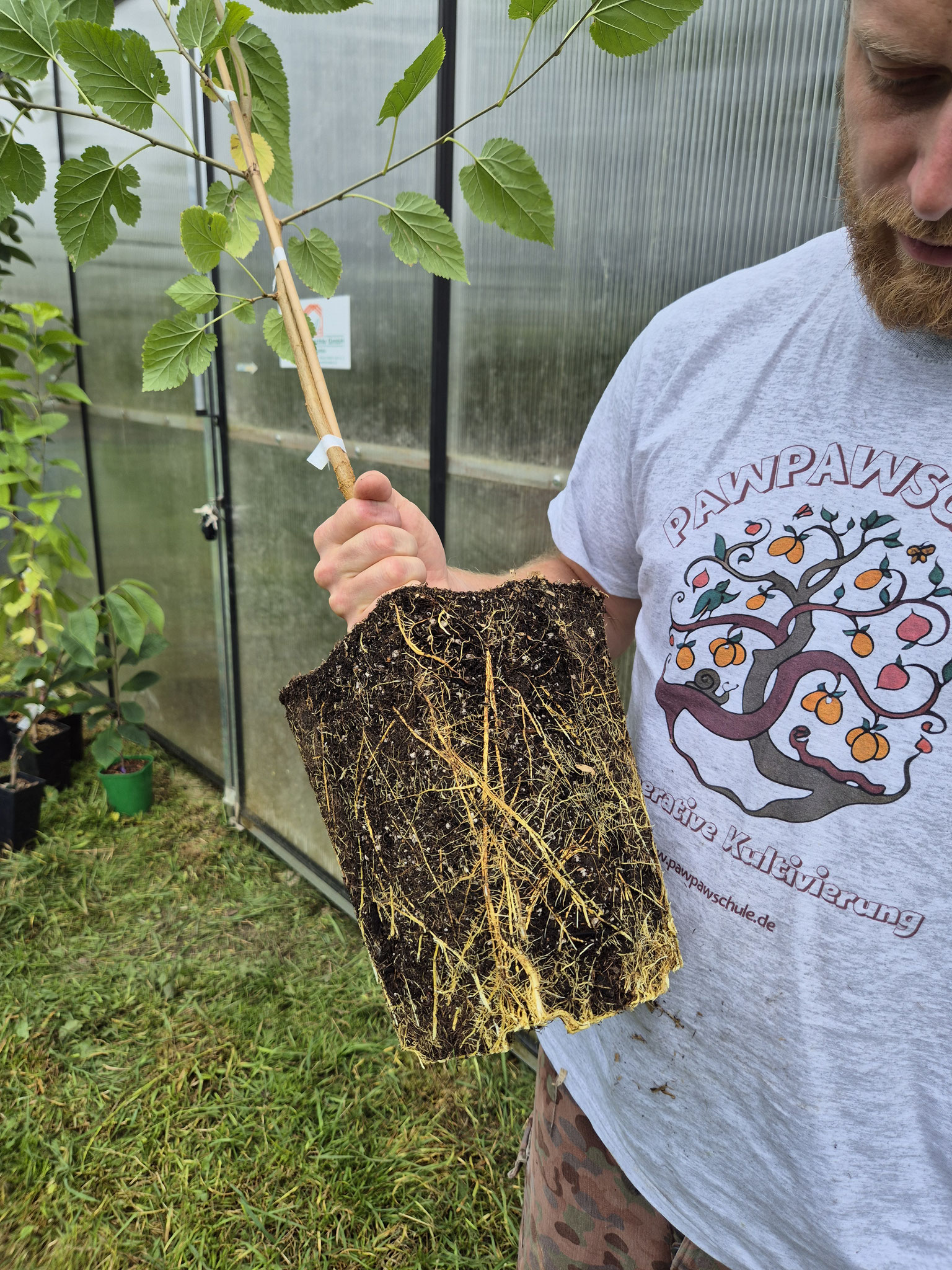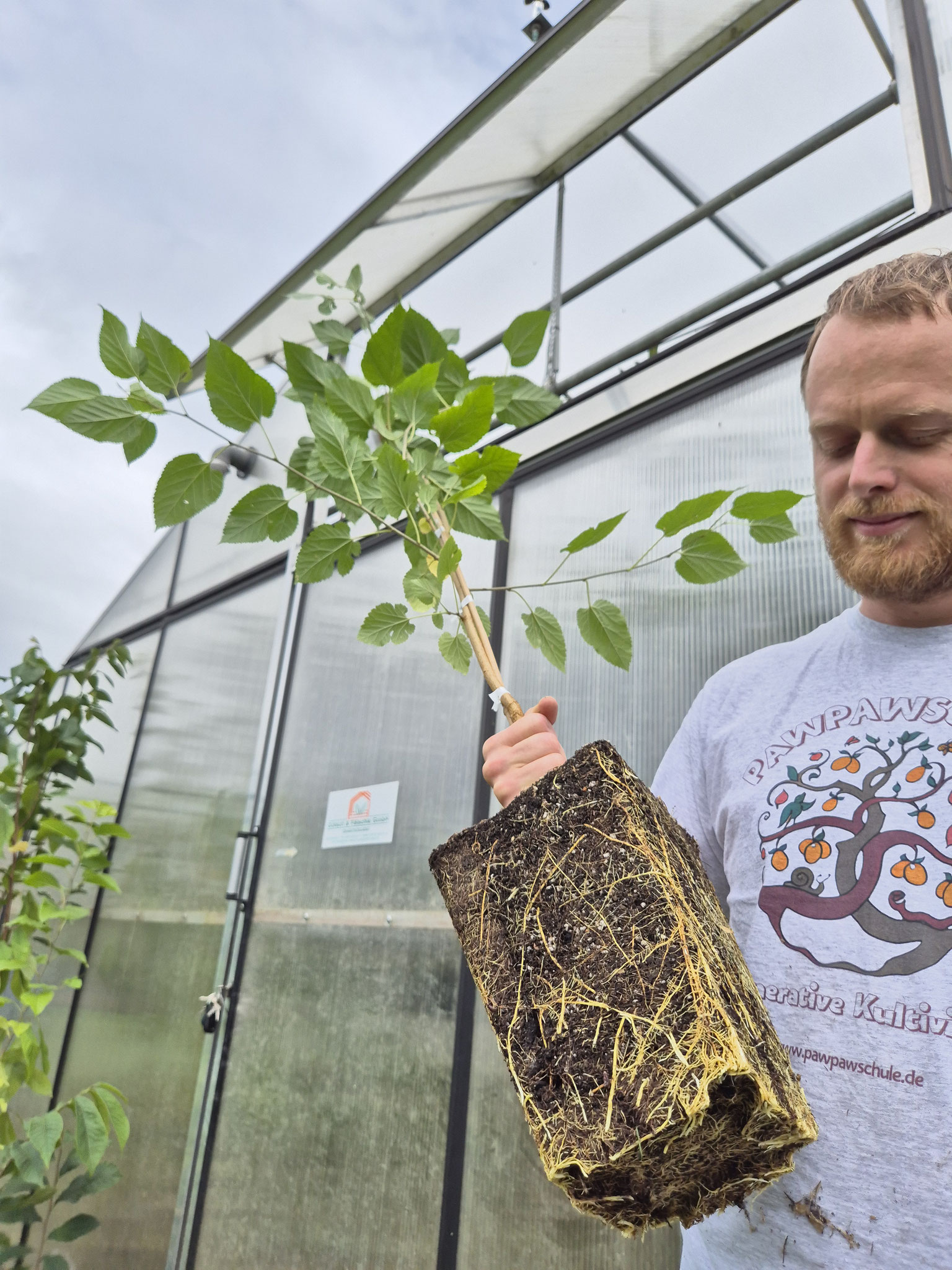 Alle meine Maulbeeren sind wurzelecht. (Auspflanzen empfehle ich als 3 jährige Bäume.)