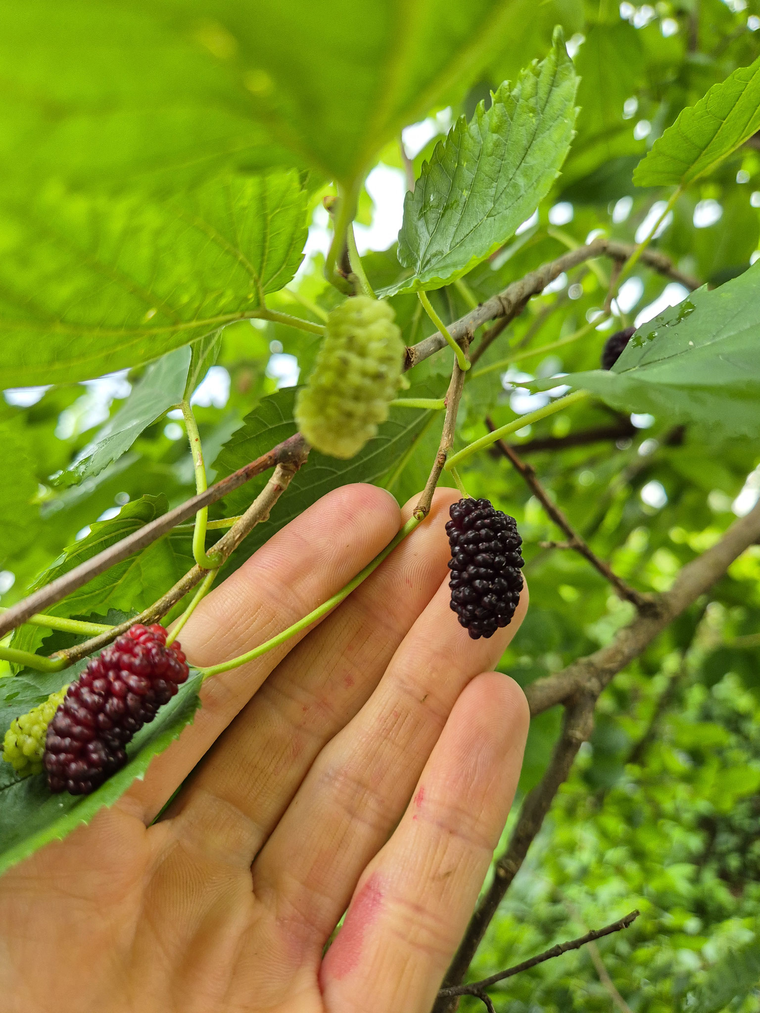 Um auch im Herbst noch Maulbeeren zu ernten, empfiehlt es sich neben Maulbeeren in voller Sonne auch welche im Halbschatten zu pflanzen.