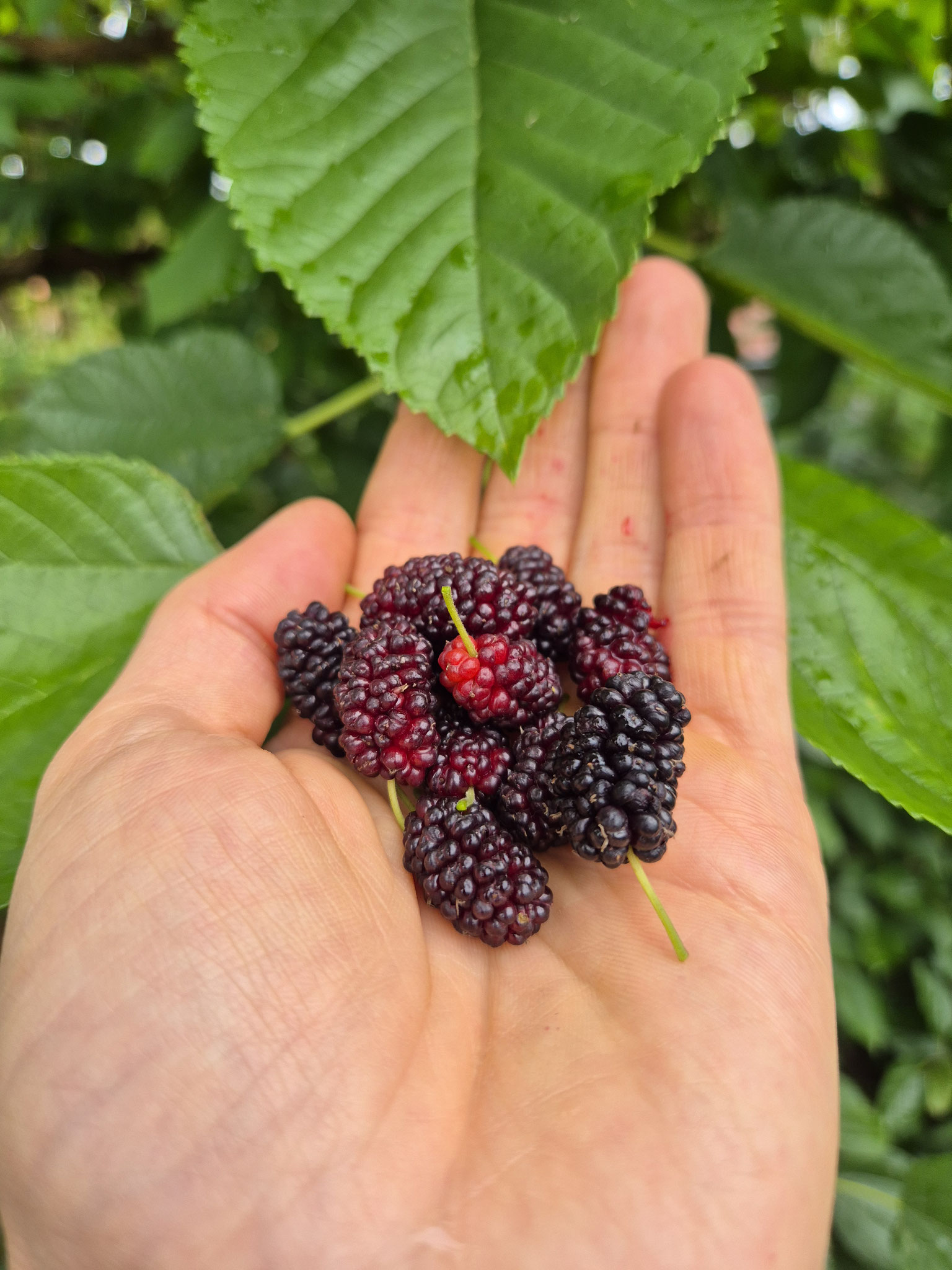 Der Goldstandart unter den Maulbeeren, trägt über einen langen Zeitraum im Sommer leckere schwarze Früchte.